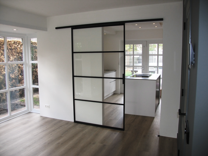 Een stalen schuifdeur is ook maatwerk, waardoor vrijwel elke afmeting en indeling mogelijk is.